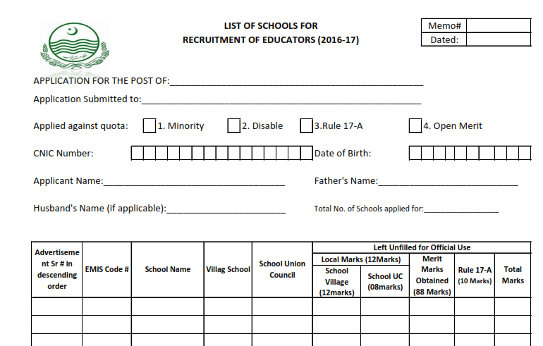 PUNJAB EDUCATORS JOB 2016: NEW APPLICATION FORMS AND CHALLAN FORM 2016-17To Download Latest Job Application form and Challan From click the following link CLICK HERE